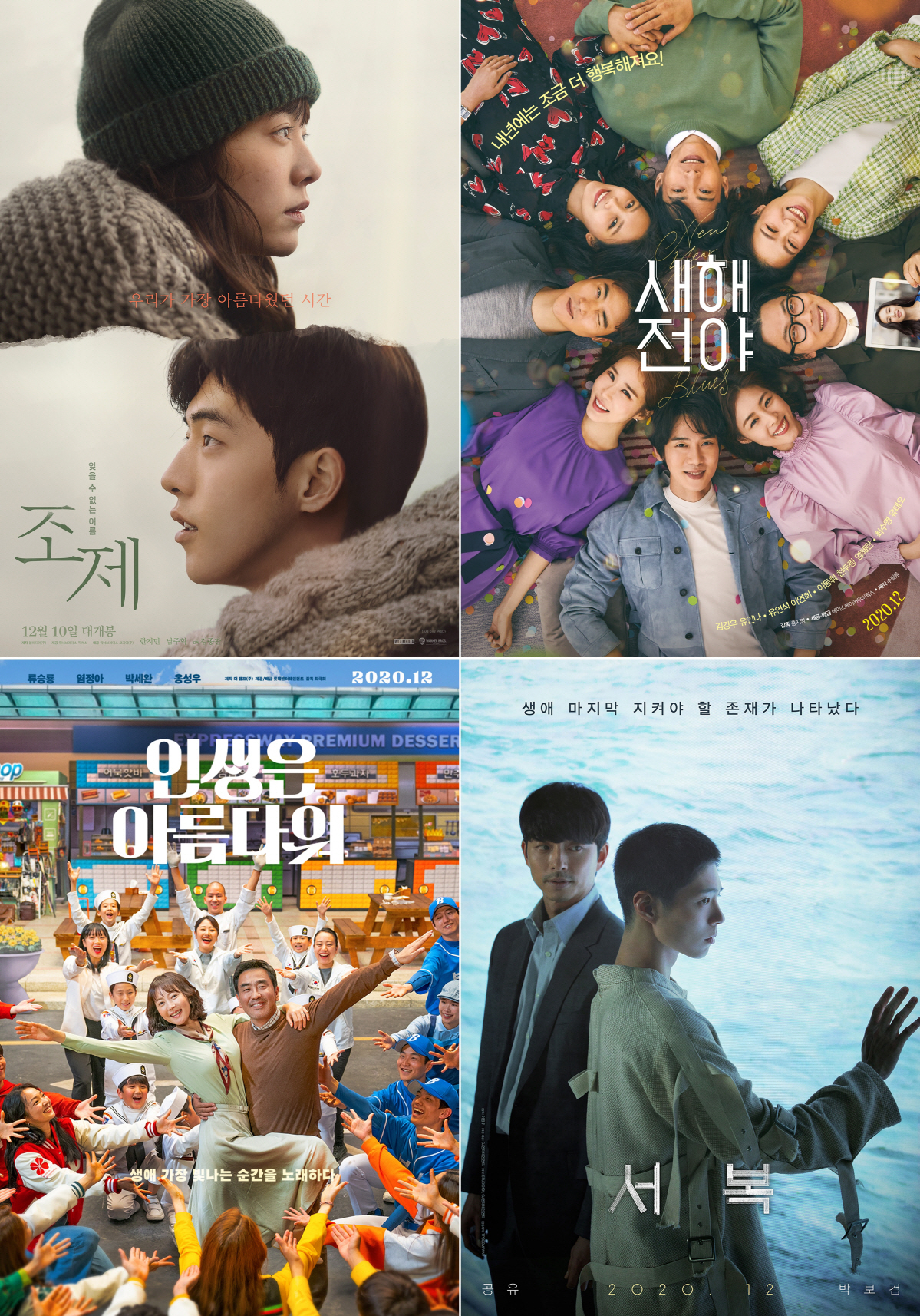 코로나19 여파로 아직 개봉일을 잡지 못한 12월 기대작 '새해전야'(홍지영 감독) '인생은 아름다워'(최국희 감독)와 '서복'(이용주 감독)도 빨간불이 켜졌다. 코로나19 확산세가 급증하면서 두 작품 모두 12월 말로 개봉을 연기했는데, 정부의 강력해진 사회적 거리두기 대책까지 이어지면서 12월 극장가에 더욱 갈피를 잃게 됐다. 특히 '서복'은 올해 개봉을 포기, 내년 시즌 개봉을 두고 내부적으로 진지하게 고민 중이다.