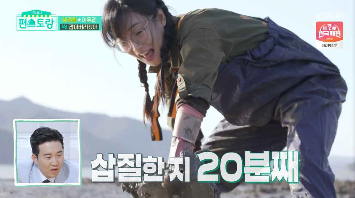 갯벌에 간 이유리는 어머님들이 잡는 쏙을 함께 잡았다. 20분 이상 갯벌을 파던 이유리는 첫 수확에 감격했다. 이어 열정으로 쏙 한바구니를 캔 이유리는 어머님들이 쏙을 즉석에서 갈아 젓갈을 만드는 걸 보고 돕다가 쏙 젓갈 선물을 ㅇ받았다.