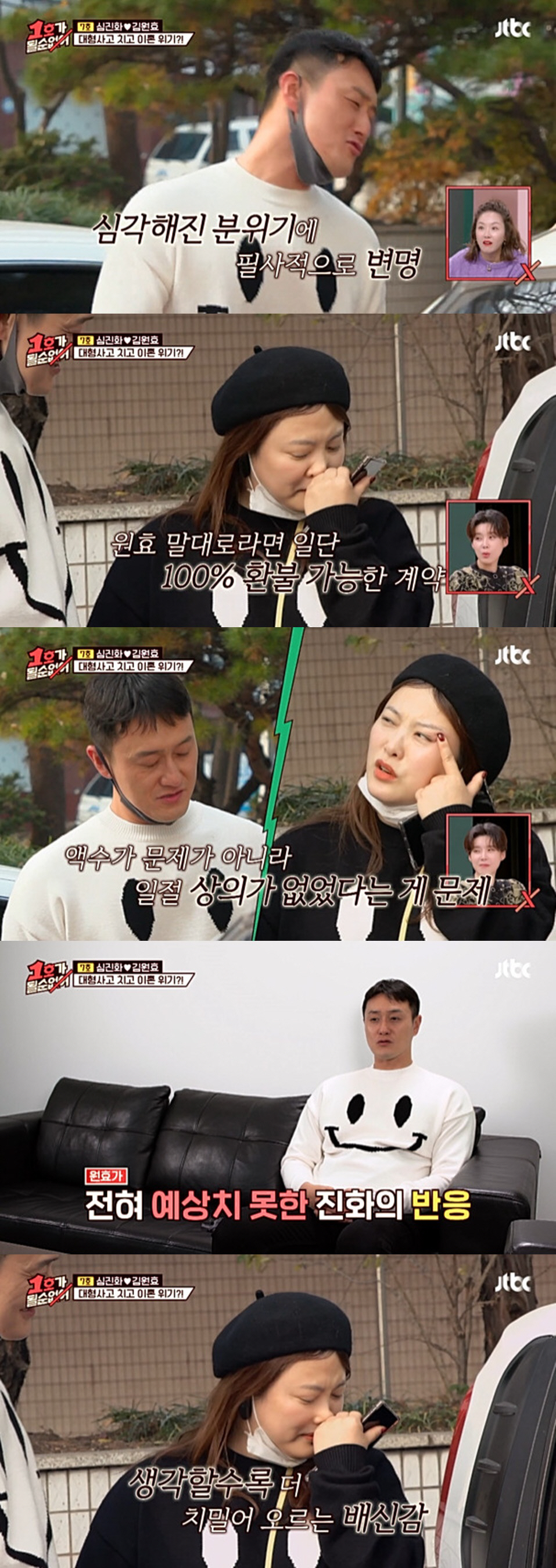 반면 김원효는 "(심진화가) 놀랄 거라고 생각 못했다. 아니다 싶으면 계약 파기를 해도 100% 환불이 돼서 보증금으로 건 것"이라고 밝혔다.