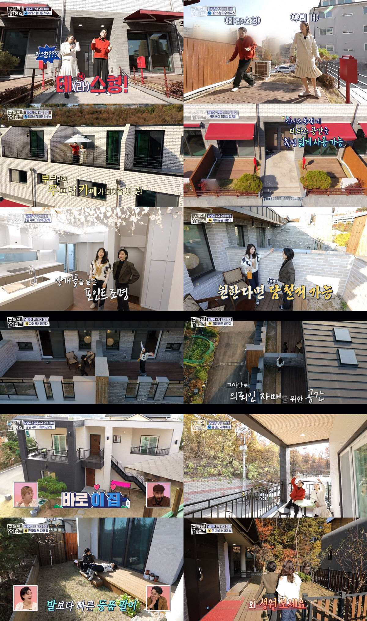이에 덕팀에서는 아나운서 출신 방송인 박은영과 동갑내기 붐이 출격했다. 덕팀의 첫 번째 매물은 양주시 장흥면의 '장흥! 테(라)스 형!'이었다. 레드 차양 포인트가 돋보이는 타운 하우스 매물로 두 세대가 붙어있었다.