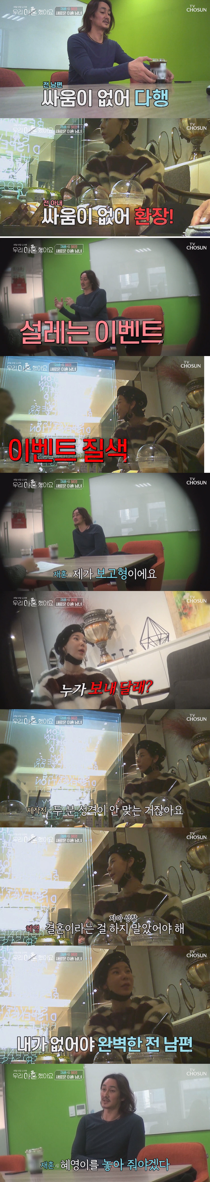 또 박혜영은 박재훈의 연락을 자주하는 '보고형' 성격에 대해 "누가 알려 달라고 하냐. 너무 불편하고 솔직히 이해가 안 된다"고 털어놨다.