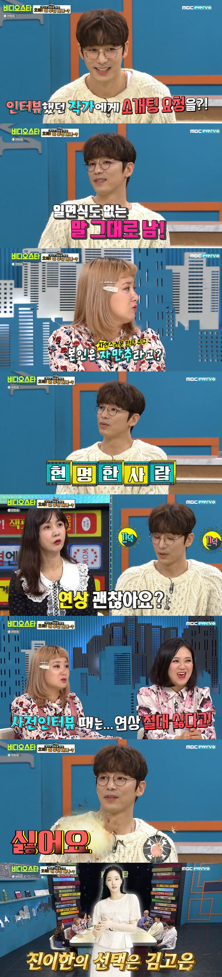 [스포츠조선닷컴 정안지 기자]'비디오스타' 진이한이 이상형으로 배우 김고은을 꼽았다.