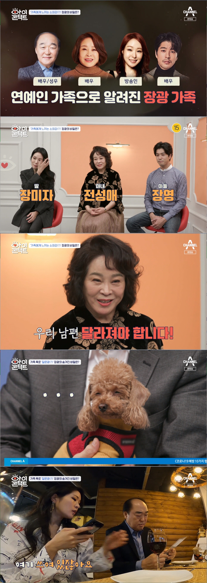 '소외감을 느낀다'는 장광의 말에 가족들은 하나같이 한숨을 쉬었다. 장광의 아내이자 배우 전성애는 "우리 남편은 달라져야 한다"라고 단호하게 말했다. 딸 장미자는 "너무 따뜻한 분이시지만 가족들을 힘들게 하신다. 아빠를 한 마디로 정의하면 '물음표 폭격기' '질문광'이다"라고 말했다.