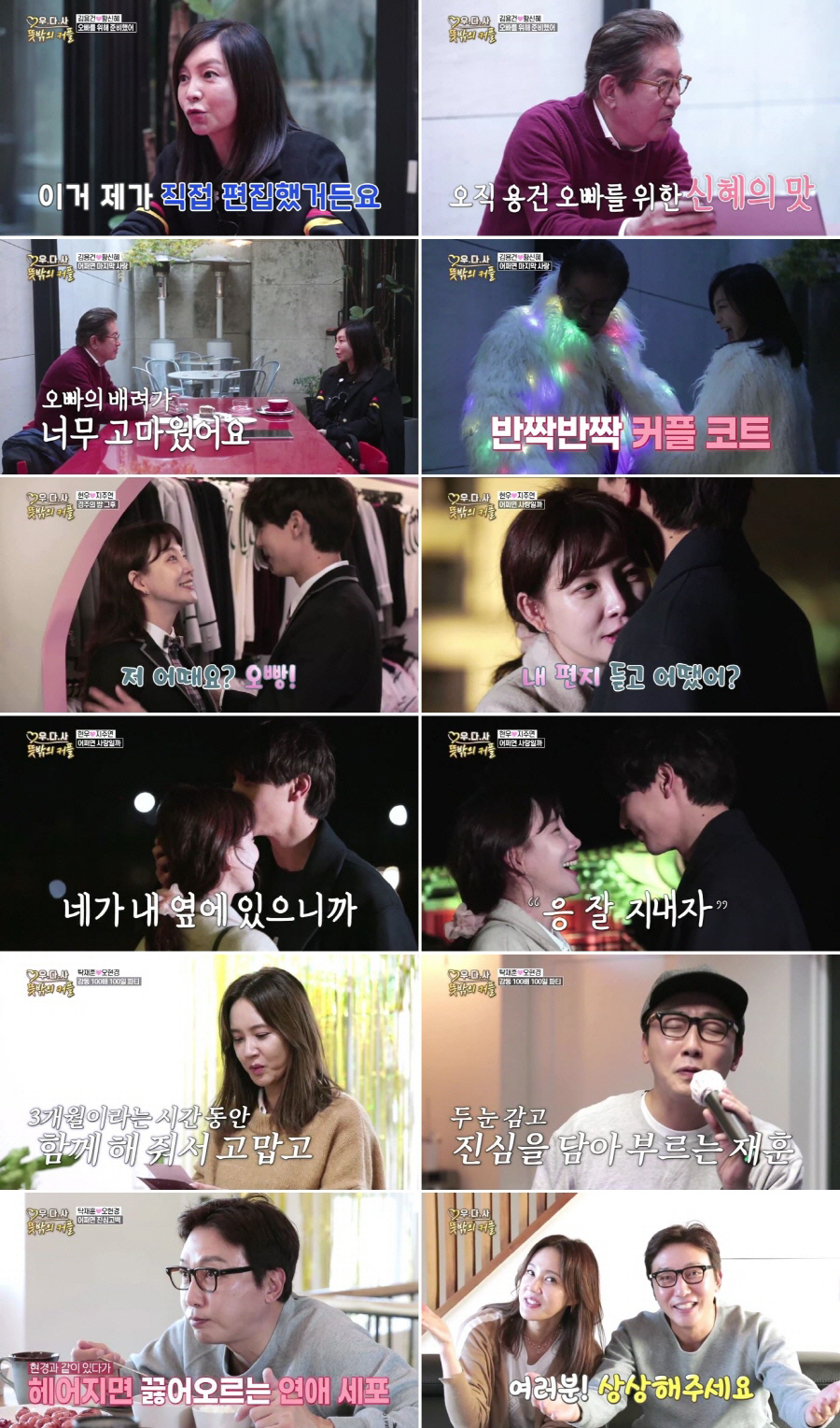 탁재훈X오현경 커플은 특별 손님 임형준, 김수찬의 도움을 받아 100일 기념 파티를 진행했다. 탁재훈은 오현경을 위한 '귤나무' 선물과 함께 "많이 모자라는 오빠를 끝까지 챙겨줘서 고맙다"는 손편지를 건넸다. 눈물이 그렁그렁한 오현경의 반응에 "마음의 빚을 한 방에 갚은 것 같다"는 탁재훈은 뒤이어 거실에서 '노래방 파티'를 개최했고, 신승훈의 '미소 속에 비친 그대'를 진심 담아 열창했다. 오현경 또한 답가로 이재훈의 '사랑합니다'를 불렀고, 노래 말미 "오빠 고맙습니다"라고 덧붙이며 마음을 표현했다.