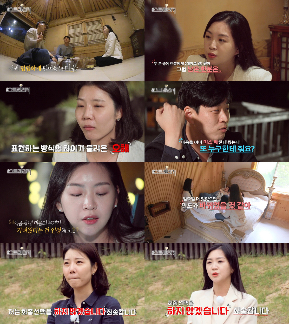 드디어 최종 선택의 날이 밝았다. 직진 로맨스의 주인공 미스터 작은 이는 최종 선택에서 미스 배를 선택했지만, 그와의 연애에 대한 확신을 느끼지 못했던 미스 배는 울먹거리며 최종 선택을 하지 않겠다고 말해 안타까움을 남겼다.