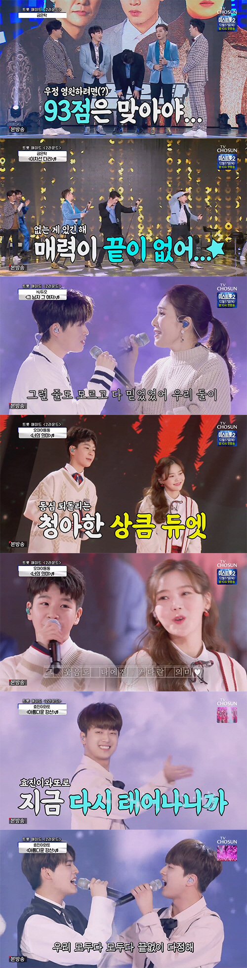 네 번째는 '효진이와또'가 이선희의 '아름다운 강산'을 선곡해 무대에 올랐다. 두 사람은 안무까지 맞춰 무대에 올랐고 멤버들은 "이찬원 아이돌 됐네"라고 평가했다. 이 무대로 효진이와또는 100점을 획득했다.