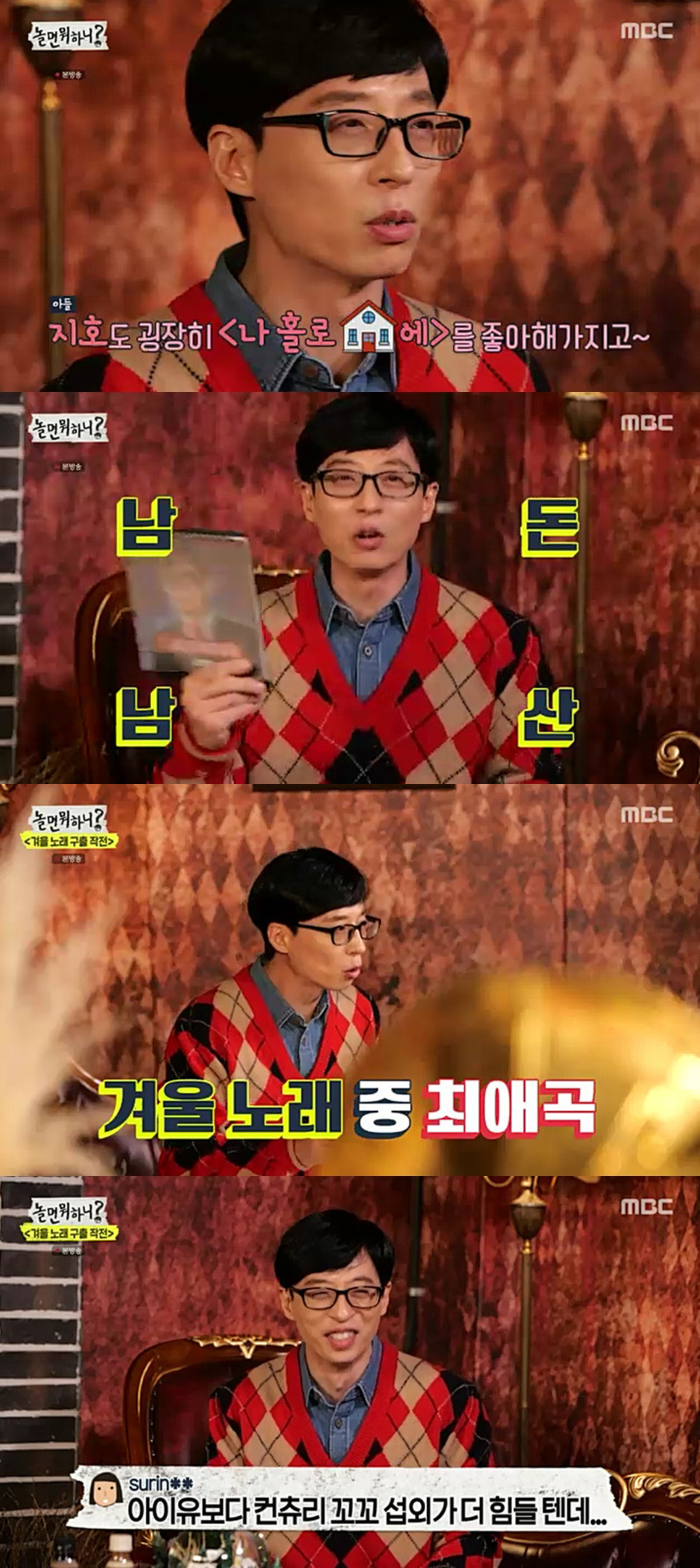 12일 방송된 MBC 예능프로그램 '놀면 뭐하니?'에서는 겨울 노래 구출 작전을 개시한 유재석의 모습이 담겼다.