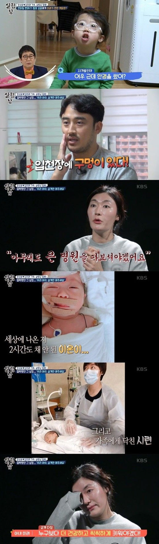 이날 김미려, 정성윤 부부는 둘째 아들이 희귀병을 앓고 있다는 사실을 고백해 모두를 가슴 아프게 했다. 정성윤은 "아이가 태어나자마자 호출을 하더라. 입천장에 구멍이 있고 숨이 불안정하다고 했다"라고 운을 뗐다.