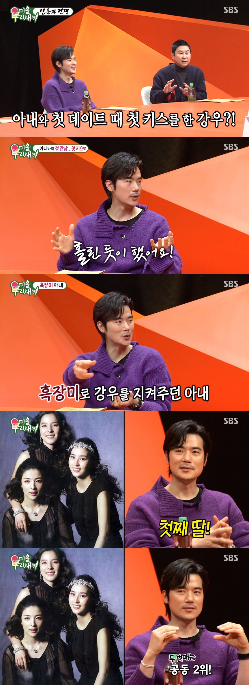 신동엽도 김강우 아내의 미모에 "분위기가 있다"며 감탄했다. 그러면서도 "(미모로) 두 번째는 누구냐"고 짓궂게 물었고, 김강우는 "공동 2위"라며 현명한 대답을 내놨다.