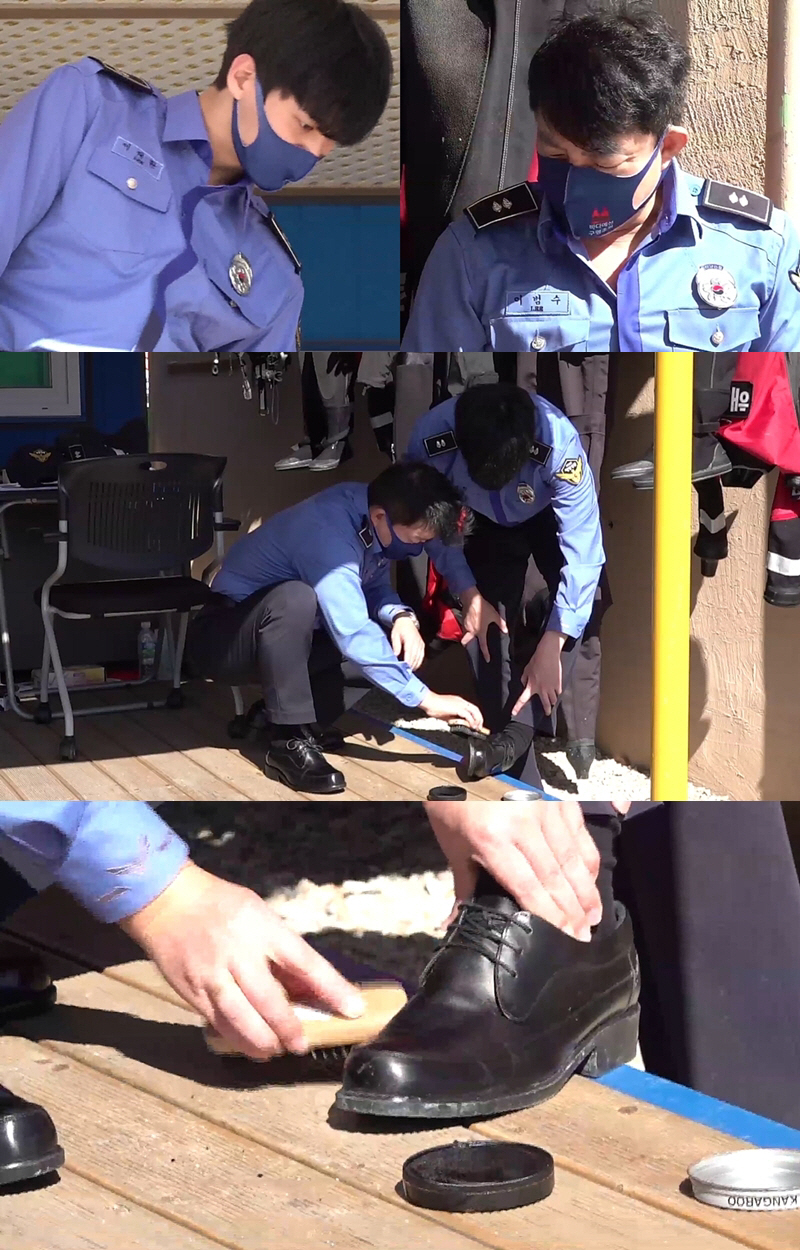 이날 출근한 이범수는 가뿐하게 근무복으로 갈아입고 파출소로 향했다. 특히 눈길을 끈 것은 반짝반짝 빛이 나도록 잘 닦은 이범수의 구두였다. 이범수는 능숙한 실력으로 금세 구두에서 광이 날 정도로 깨끗하게 닦아 놀라움을 자아냈다.