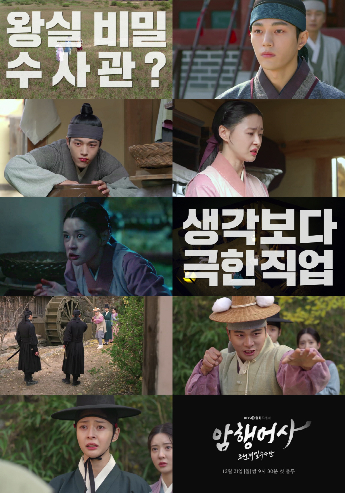 오는 21일(월) 밤 9시 30분 첫 방송되는 KBS 2TV 새 월화드라마 '암행어사: 조선비밀수사단'(이하 암행어사/ 연출 김정민/ 극본 박성훈, 강민선/ 제작 아이윌 미디어)이 첫 방송을 일주일 앞두고 웃음을 절로 자아내는 4차 티저 영상을 공개, 예비 시청자들의 기대감을 끌어올리고 있다.
