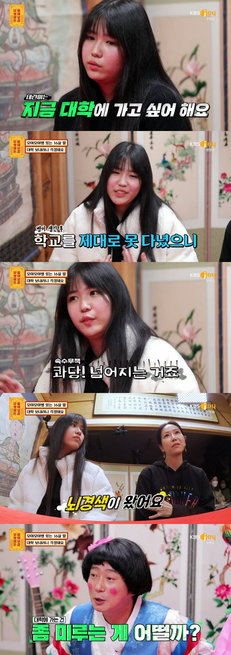 14일 방송된 KBS joy 예능프로그램 '무엇이든 물어보살'에서는 희귀병을 앓고 있는 16세 소녀의 사연이 공개됐다.