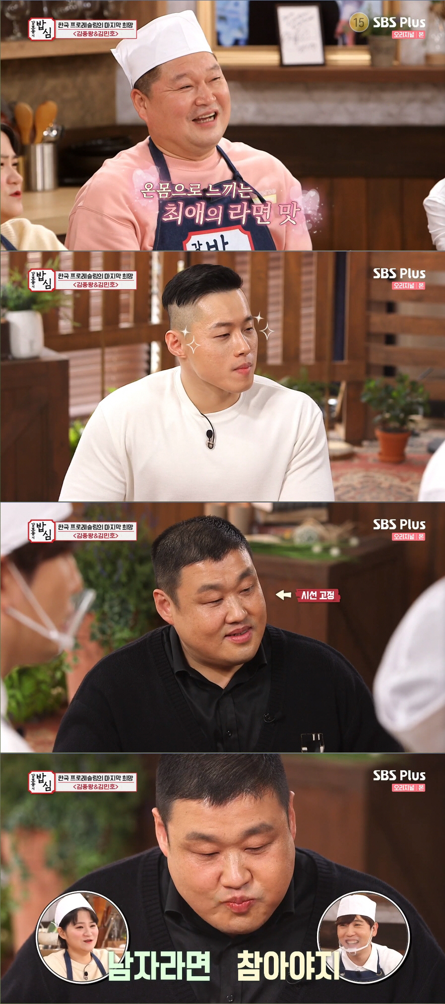 김종왕 김민호는 강호동의 팬을 자처하며 그가 직접 끓여준 라면 비주얼에 입맛을 다시며 시선을 떼지 못했다. 김종왕은 "이게 무슨 맛이냐. 머리털나고 이렇게 맛있는 라면은 처음 먹어본다. 이건 라면이 아니라 요리다"라고 극찬했다. 김민호도 감동의 소감을 쏟아냈다.