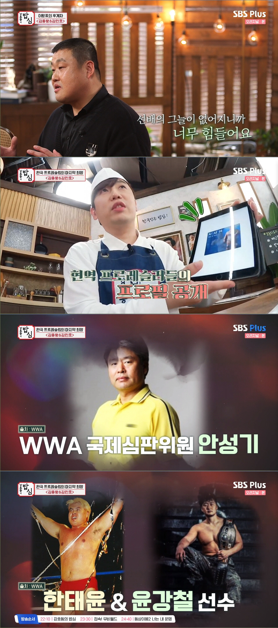 김민호는 "이왕표 선수는 저희 프로레슬링 선수들에게는 아버지 같으신 분이다. 돌아가신지 2년이 됐지만 추모시합을 아직 열지 못했다"라고 속상해했다. 그는 "제가 고등학생 시절 처음 본 경기가 이왕표 선수의 시합이었다. 키 190cm에 120kg이신데 카리스마가 엄청나셨다. 그 모습에 제가 반했다. '나도 저런 사람이 되고 싶다'라는 마음에 졸업하자마자 달려가서 '프로레슬러 시켜주세요. 선생님처럼 되고 싶습니다'라고 했다. 훈련생 때 일본으로 유학을 갔는데 용돈도 주시고 물심양면 챙겨주셨다. 저를 프로레슬러로 키워주신 아버지다"라고 이왕표를 기렸다.
