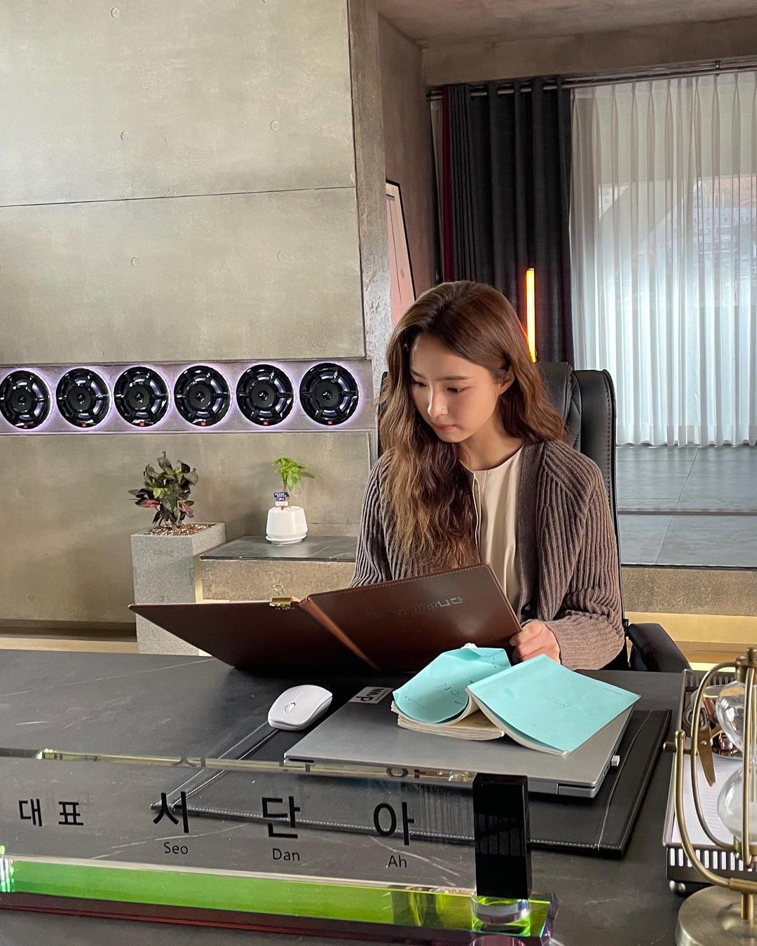 공개된 사진 속에는 '런 온' 촬영 중에 찍은 듯한 신세경의 모습이 담겼다. 신세경은 '대표 서단아'라고 적혀있는 명패 앞 서류를 진지하게 검토하고 있다. 신세경은 마치 CEO가 된 듯 카리스마 넘치는 모습.