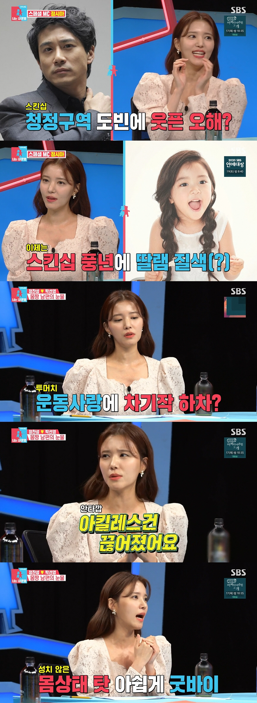 또 정시아는 남편이 최근 드라마에서 하차한 일을 전하며 안타까움을 드러냈다. 그는 "남편이 MBC '무신'을 마지막으로 5년 동안 작품을 못 했다. 사실 배우들은 불러주는 곳이 없으며 몇 년이고 못하지 않냐. 근데 오랜만에 작품이 들어왔고, 좋은 역할이었다"며 "작품에서 액션을 많이 해야 해서 평소보다 열심히 운동하고 준비했는데 아킬레스건이 끊어졌다"고 말해 안타까움을 자아냈다.
