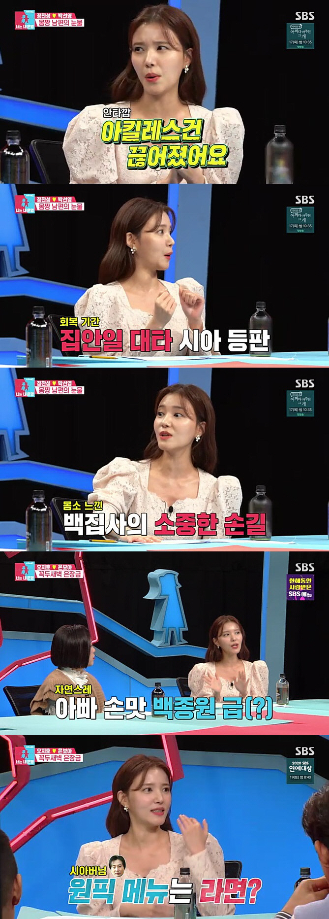 요리에 얽힌 에피소드는 또 있었다. 정시아는 "신혼 초엔 할 수 있는 요리가 없어서 아버님께 라면을 끓여드렸다. 너무 잘 드셔서 라면을 좋아하는 줄 알고 매일 라면을 끓여드렸다"며 "어느날 '내가 살아생전 라면을 원 없이 먹어보는 구나'라고 하셔서 그때 참고 드셨다는 걸 알았다"고 밝혔다.