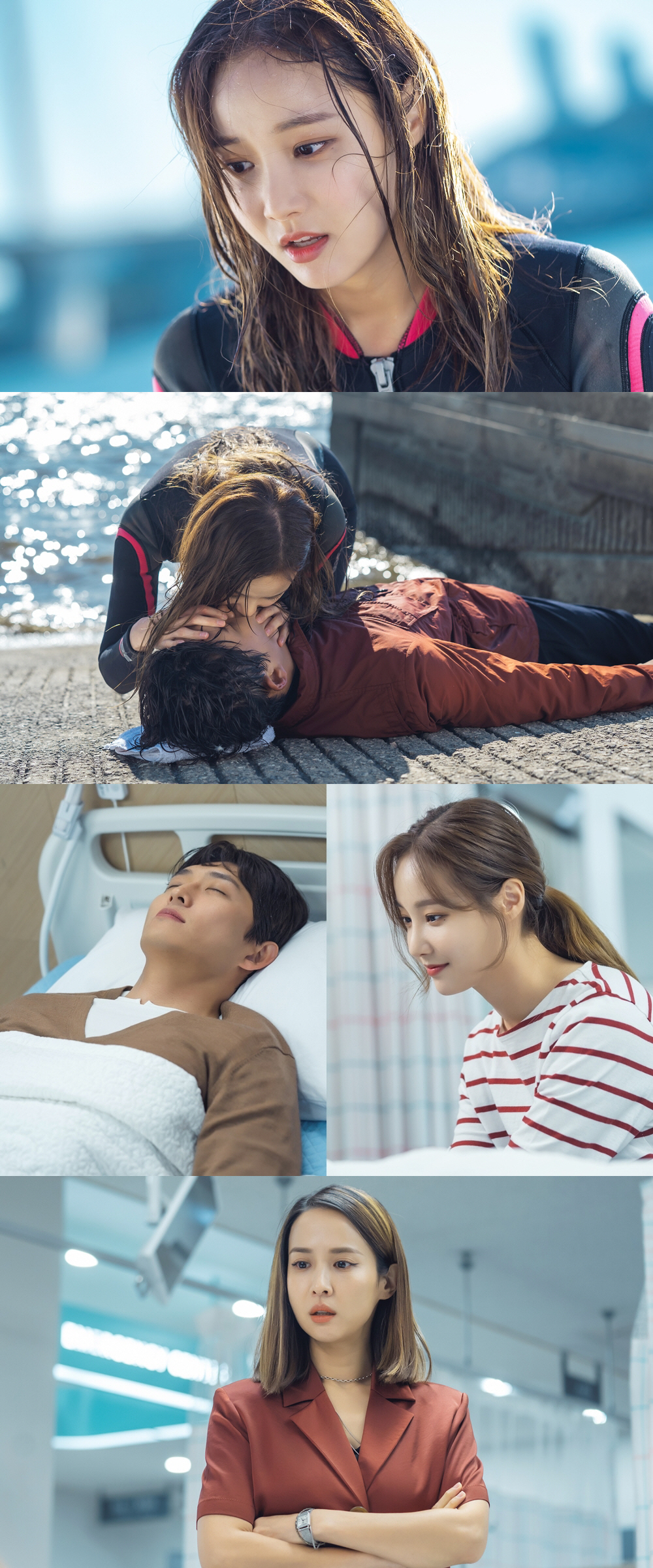 공개된 사진엔 머리카락이 강물에 흠뻑 젖은 미래의 모습이 담겼다. 미래는 물에 빠진 우성을 구하고 정신을 잃은 그에게 인공호흡을 하고 있다. 두 사람의 모습은 마치 동화의 한 장면을 연상케 만든다.