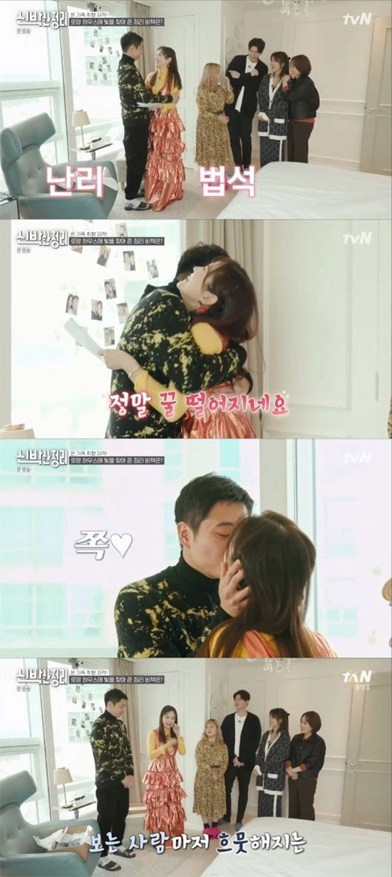 특히 이날 장영란은 남편을 위해'직접 쓴 사랑의 서약서'를 깜짝 서프라이즈 선물을 건넸다. 장영란은 "항상 사랑한다고 먼저 표현해주는 남편에게 더 이상 수줍은 듯 내숭떨지 않고 먼저 다가가고 적극적으로 표현하고 안아주고 남편의 온몸을 만져주겠다"면서 "무한 사랑을 주는 남편의 고마움 잊지 않고 남편에게 설레임을 주려고 노력하고 더 가꾸겠다"고 했다. 이어 그는 "두 아이보다 내 마음 속의 1순위는 남편이라 다짐하며 나 또한 남편에게 무한 사랑 드리겠다"고 했고, 남편은 그런 아내를 꼭 안아줬다.