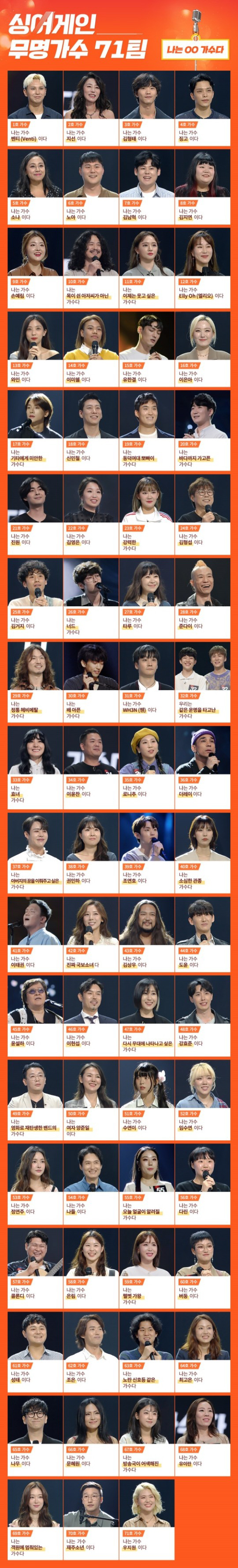 [스포츠조선닷컴 김준석 기자] '싱어게인' 본선에 진출한 71팀 중 합격자를 제외한 전원의 이름이 공개됐다.