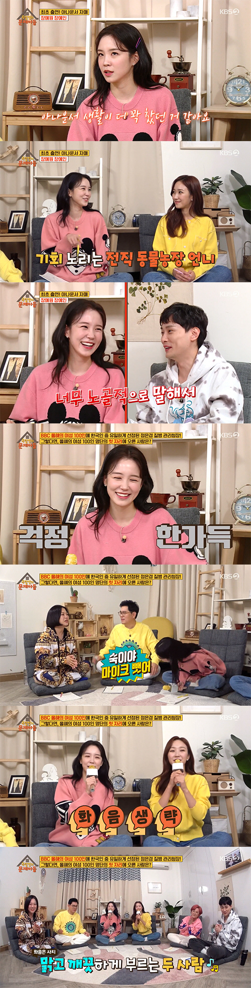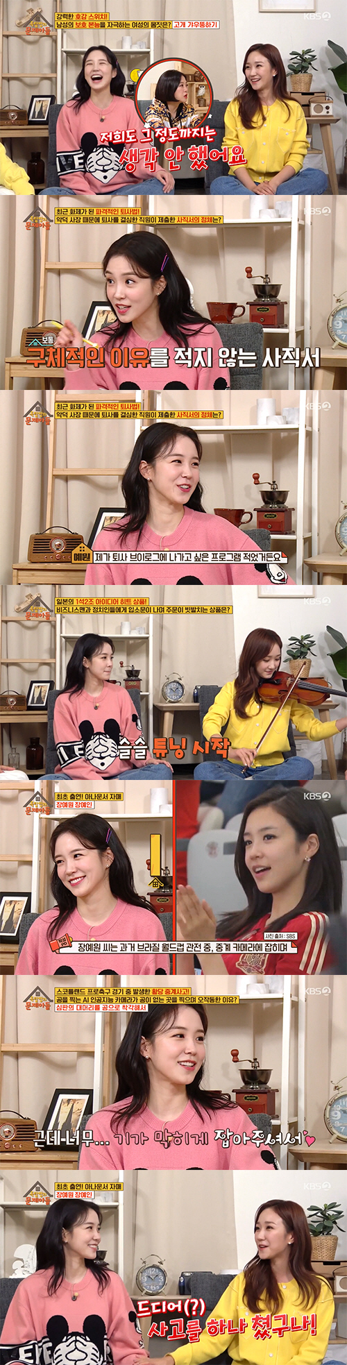 먼저 프리선언을 했던 장예인은 처음에는 언니 장예원의 퇴사를 말렸었다고 밝혀 궁금증을 유발했다. 먼저 퇴사 후 프리 아나운서로 활동하기 시작한 장예인은 '퇴사 선배'로서 "아무도 언니를 안 불러줄 수 있다"는 조언을 했었다는 것. 그녀는 "먼저 나와 보니 녹록지 않았다"면서, 혹여나 언니가 퇴사 후 상처를 받을까 걱정했던 따뜻한 마음을 드러내 훈훈함을 자아냈다.