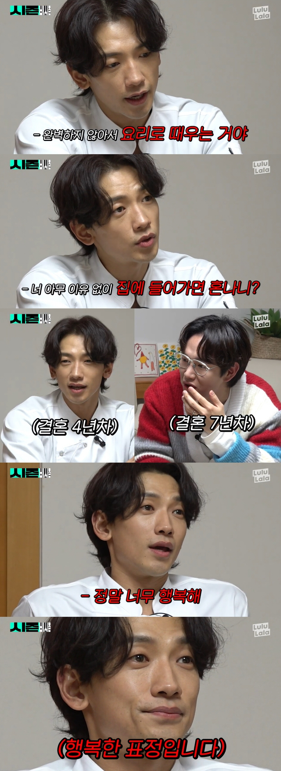이에 비는 "난 들어가면 정말 너무 행복하다"고 강조했고, 그 모습을 본 장성규는 "형 눈에 눈물이 고였다"며 놀려 폭소케 했다.