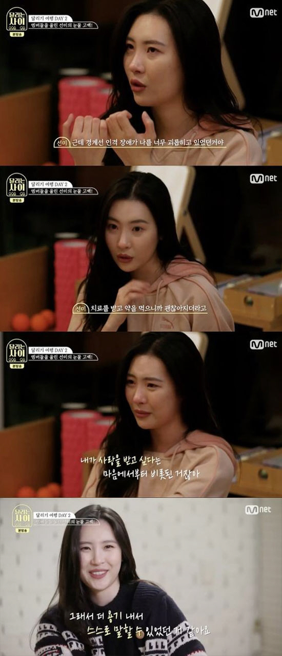 선미는 "그때는 몸 아픈 것 보다 사실 마음 아픈게 더 컸다. 솔로 데뷔하고 원더걸스 활동하고 회사(JYP엔터테인먼트) 나오고 하며 생각할 수 있는 시간이 많이 주어졌고 그 시간들이 나를 점점 갉아먹었다. 5년 전쯤 경계선 인격장애 진단을 받았다"며 눈물을 보였다.