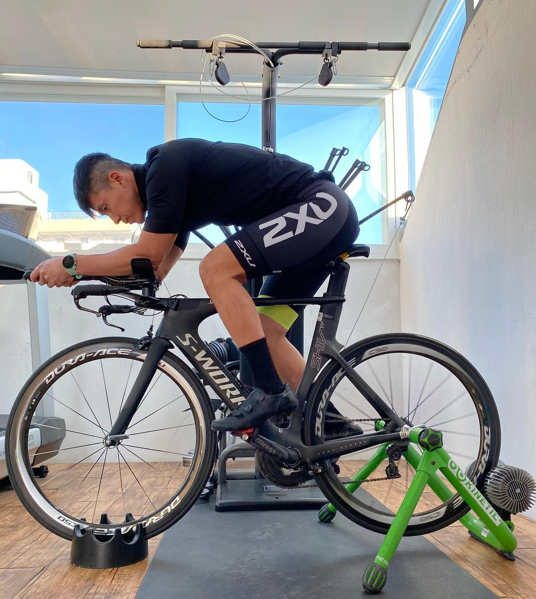 션은 17일 자신의 인스타그램을 통해 "홈트 아이들 비대면 수업 시간에 잠깐 짬 내서 실내 라이딩. 모두 힘내세요!"라는 글과 함께 한 장의 사진을 게재했다. 공개된 사진 속에는 헬스장처럼 운동기구가 놓여진 집에서 운동 중인 션의 모습이 담겼다. 아이들이 온라인 수업 중인 틈을 타 체력을 키우는 션의 부지런한 일상이 돋보인다. 또한 헬스장이라도 해도 믿을 정도로 모든 운동기구가 다 갖춰진 집도 눈길을 모은다. 션은 SNS를 통해 럭셔리한 홈트 일상을 공개해왔다.