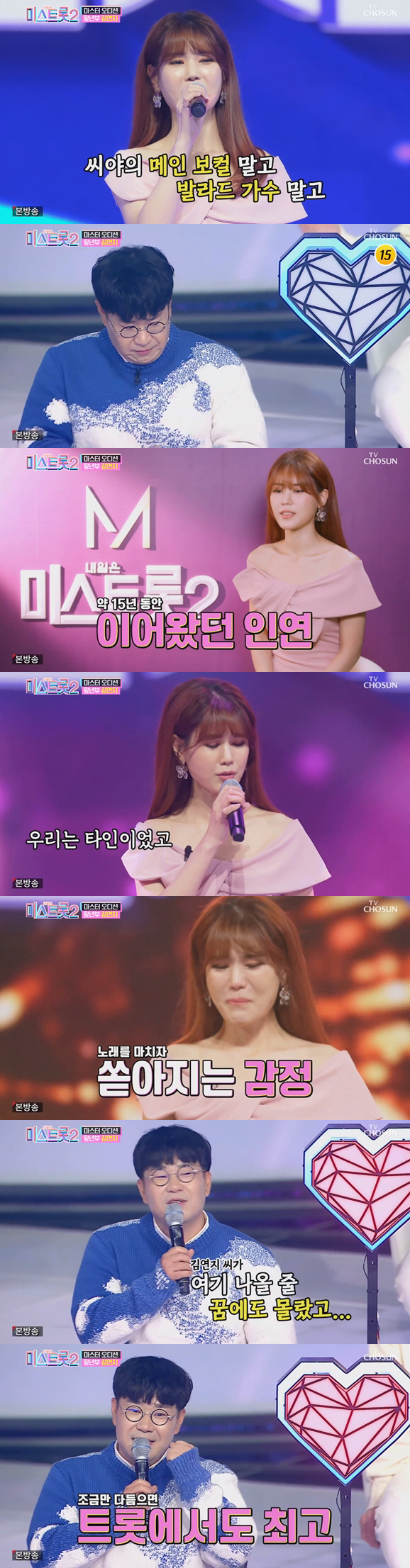 김연지는 "씨야의 메인 보컬 말고 발라드 가수 말고, 트로트를 부르고 싶어서 도전했다"고 출연 소감을 전했다. 그런데 데뷔 때부터 씨야를 키웠던 마스터 조영수는 김연지의 등장에 눈물을 보였다.