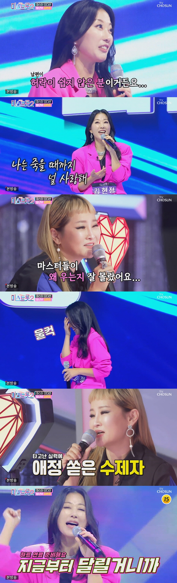 김현정은 '토요일 밤에'를 선곡, 흥겨운 댄스와 함께 완벽한 노래 실력을 선보여 올하트를 받았다. 김현정과 친분이 있는 마스터 박선주는 무대가 끝난 후 눈물을 보였다. 박선주는 "너무 잘했다. 예전에 제가 노래를 가르쳤는데, 워낙 잘해서 애정을 쏟은 제자였다. 용기를 내줘서 너무 고맙다"고 말해 뭉클함을 자아냈다.