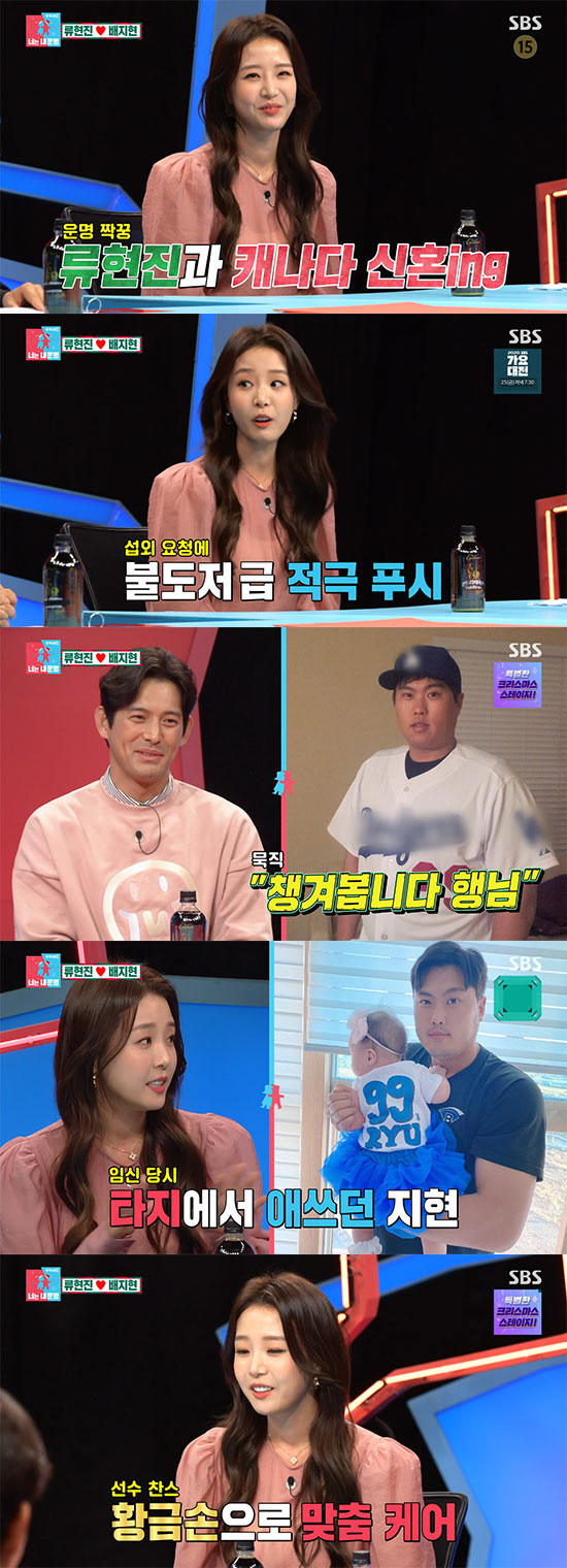 이에 류현진의 절친인 오지호는 "그래서 어제 전화가 왔더라"면서 "너무 가정적이더라"고 덧붙였다. 배지현은 "갑자기 오랜만에 통화를 하더라"면서 "드러내고 챙기는 스타일은 아니다. 아마 '잘 부탁한다'고도 안했을거다"라며 남편의 '사랑꾼' 면모를 이야기했다.