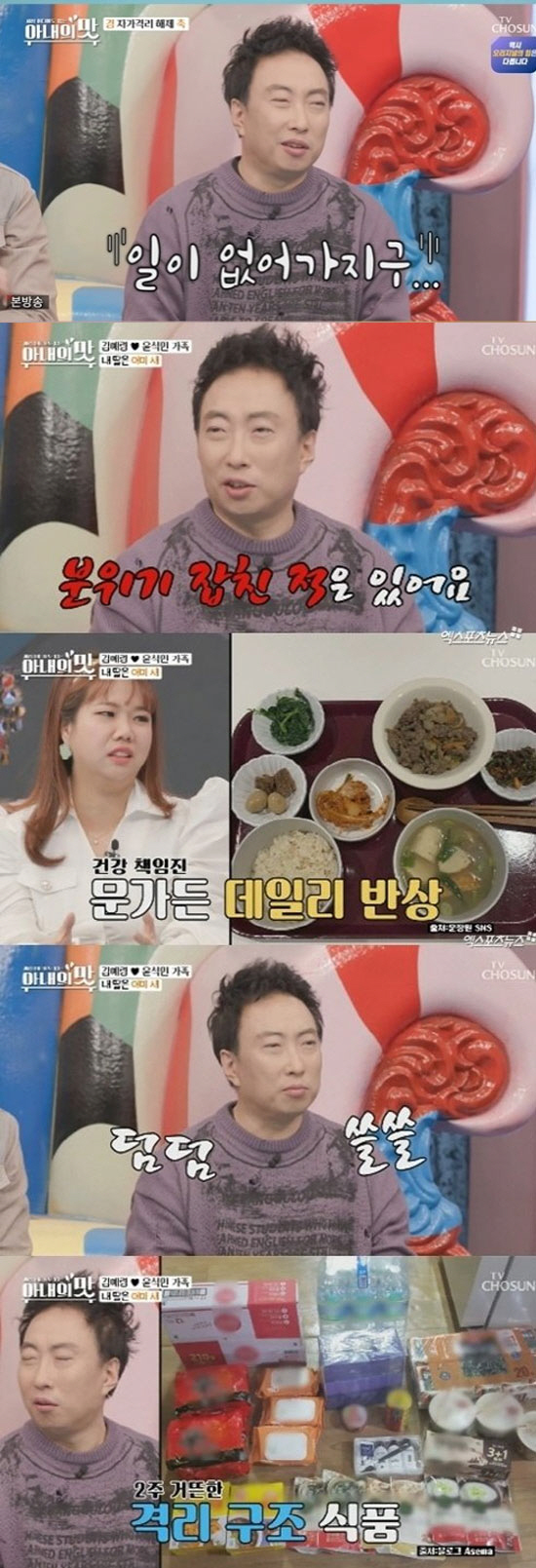 이에 이휘재는 "2주간 자가격리를 하는 동안 아내 분이 해준 음식 없냐"라고 질문했다. 이휘재 아내 문정원이 해준 정성 가득한 식단을 공개했다.