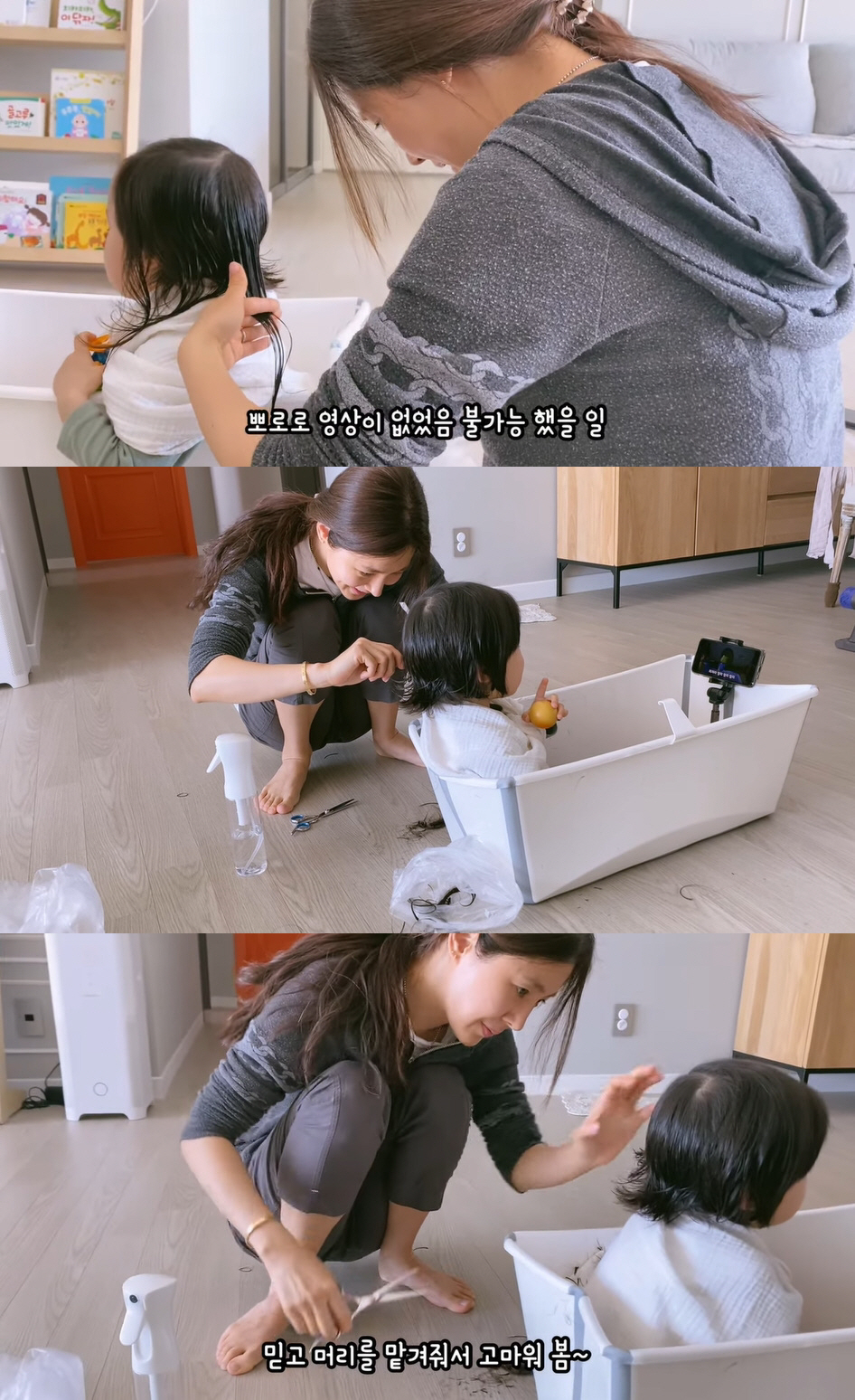 또한 한채아는 딸의 머리카락을 직접 잘라주는 모습도 공개했다. 아기 욕조에 딸을 앉혀 놓고 머리카락을 직접 잘라주는 한채아의 진지한 표정이 눈길을 끈다. 한채아는 "딸 아이 머리카락을 잘라줬다. 앞머리는 항상 잘라줬지만 전체 컷은 이번이 처음이었는데 생각보다 결과물이 좋아서 다음에도 도전해보려고 한다"며 "미용실 가서 얌전히 앉아있을 수 있을 때까지"라고 전했다. 이어 "뽀로로 영상이 없었으면 불가능했을 일. 하루에도 몇 번이나 뽀로로에 감사함을 표한다"라고 덧붙였다.