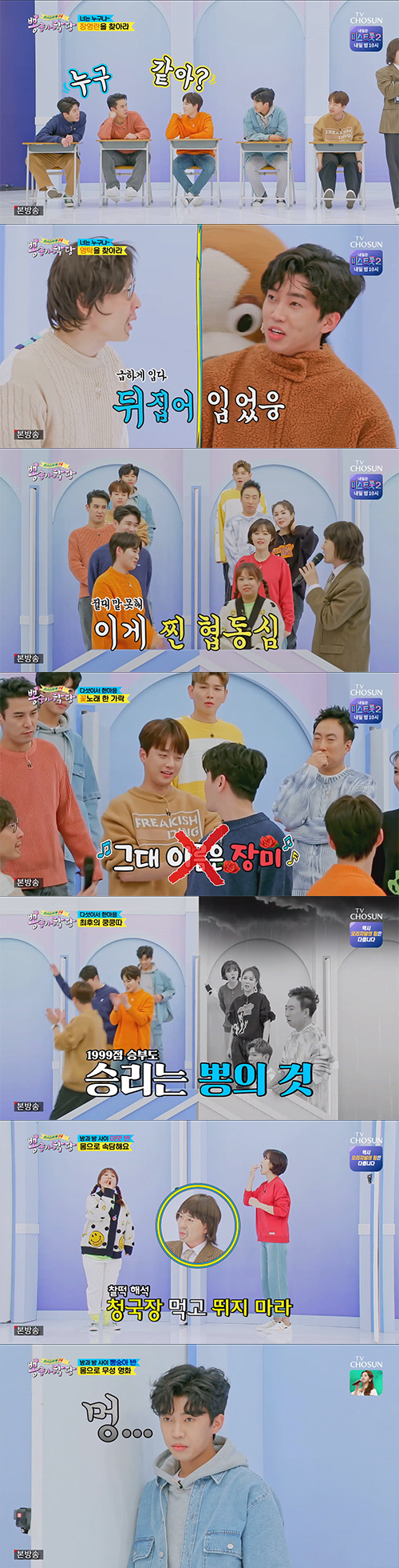 첫 문제로 꽃노래가 등장했고, 영탁은 "그대 이름은 장미"라고 노래를 불렀지만 이찬원은 "그대 모습은 장미다. 땡"이라고 이실직고를 해 웃음을 자아냈다.