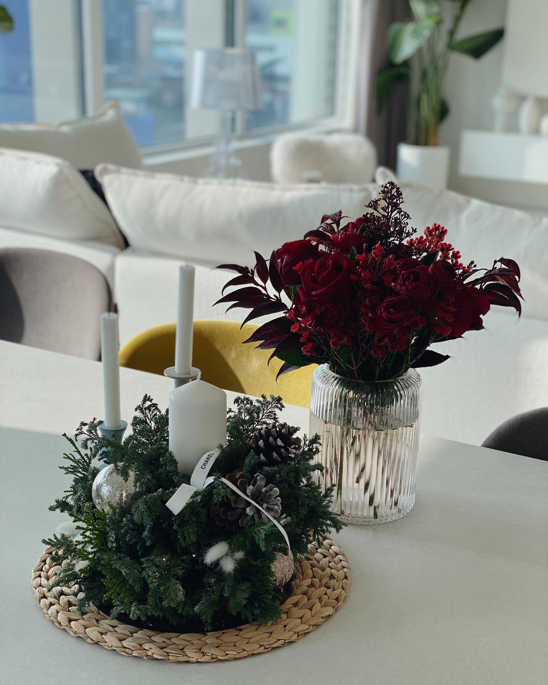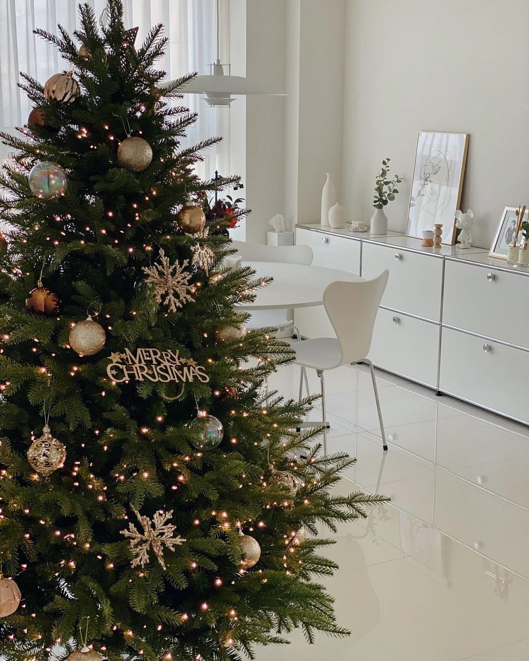 김준희는 24일 자신의 인스타그램을 통해 "결혼 후 첫 번째 크리스마스에 신랑이랑 오너먼트 하나씩 구해서 둘이 처음 함께 만든 크리스마스 트리"라는 글과 함께 여러 장의 사진을 게재했다. 공개된 사진 속에는 연하 남편과 함께 만든 대형 크리스마스 트리가 담겼다. 깔끔한 화이트톤 인테리어에 놓여진 크리스마스 트리가 신혼 감성을 더했다. 결혼 후 첫 크리스마스를 기념하는 부부의 로맨틱한 일상이 돋보인다.