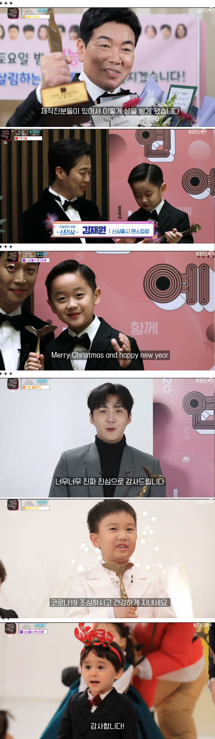 문세윤은 "제작진, 스태프분들 감사하다. 그들이 받을 상을 저희가 연예인이라는 이유로 받는다는 생각이 든다"며 "사랑하는 아내, 딸, 아들 너무 고맙다"고 전했다.