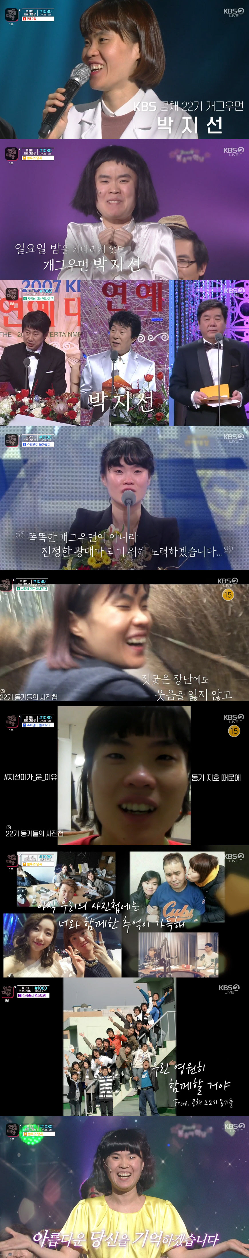KBS 공채 22기 개그우먼 박지선은 데뷔 첫 해부터 시청자들에게 큰 웃음을 줬다. 이후 2007년 코미디 부분 신인상, 2008년 코미디 부분 우수상, 2010년 코미디 부분 최우수상을 수상했다. 당시 박지선은 "똑똑한 개그맨 아니라 진정한 광대가 되기 위해 노력하겠다"는 소감을 밝히기도 했다.