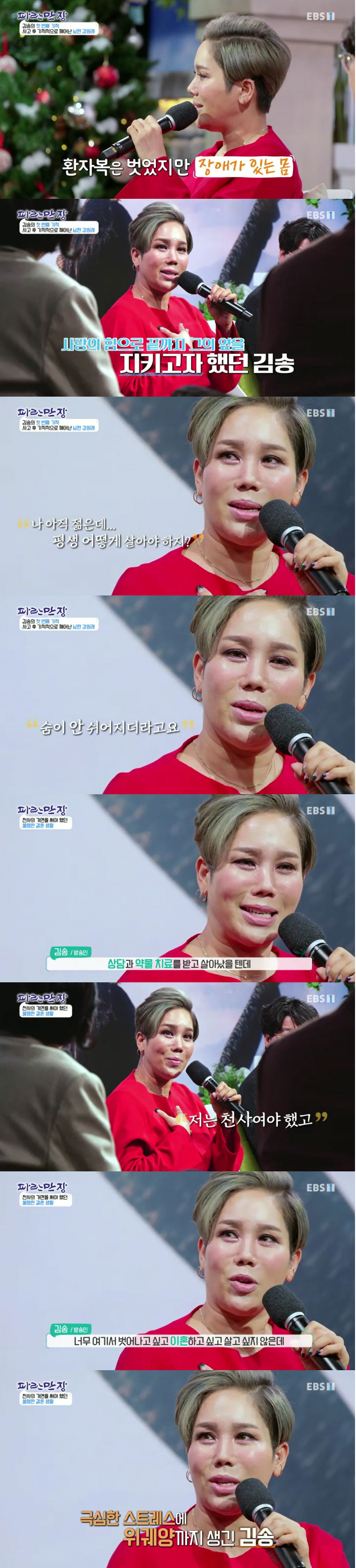 그러던 어느 날, 지옥 같던 삶이 감사함으로 바뀐 순간이 왔다. 자신과 남편에 대한 소중함이 손바닥 뒤집듯 하루 아침에 생각이 변했다고. 김송은 "그 감사는 사람의 힘으로는 안 된다. '아 내가 여기 있어야 될 곳이구나, 남편도 나도 소중한 사람이구나' 알게 됐다"며 "그 감사의 의미를 알게 됐다. 그게 나한테 찾아온 두 번째 기적"이라고 말했다.