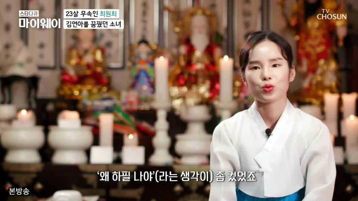28일 방송한 TV조선 '스타다큐 마이웨이'에서는 김연아를 꿈꾸던 피겨소녀 최원희가 초등학교 시절 전국 1등까지 했던 재능을 뒤로 하고 스물셋의 나이에 신내림을 받고 친언니들과 절연까지 하며 무속인의 삶을 선택한 이유가 전파됐다.