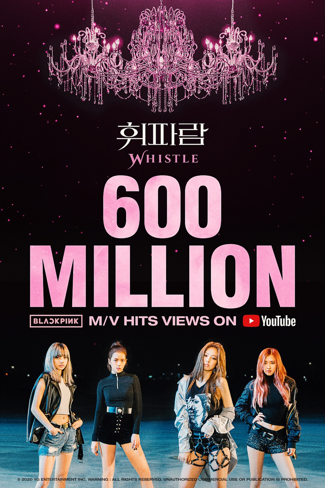 [스포츠조선닷컴 김준석 기자] 블랙핑크의 데뷔곡 '휘파람' 뮤직비디오가 유튜브에서 6억뷰를 돌파했다. 블랙핑크 통산 7번째 6억뷰다.