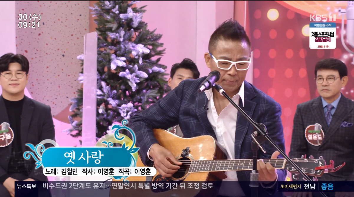 김철민은 이문세 '옛사랑' 등 직접 기타를 치며 노래를 불러 감동을 안겼다. 특히 김철민의 무대가 끝내자 출연진들은 기립박수로 김철민을 응원했다.