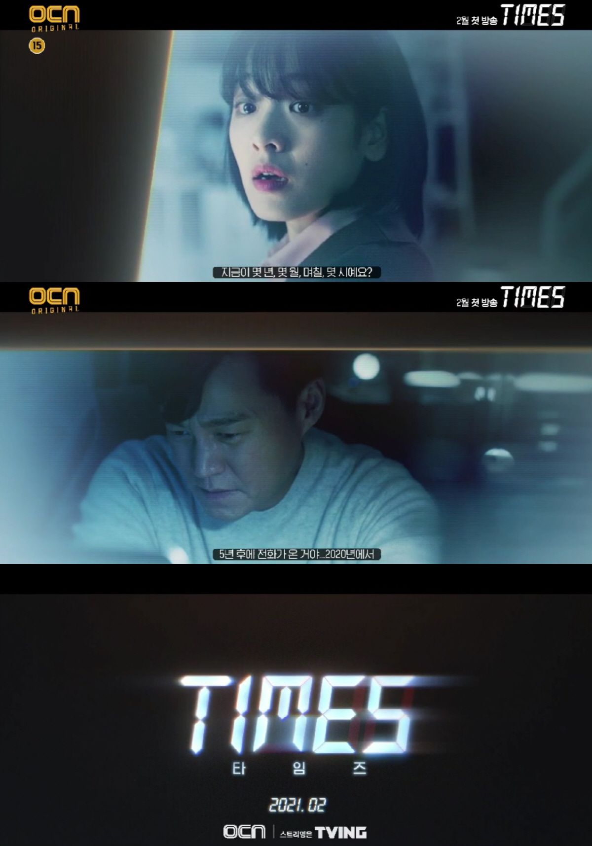 OCN 새 토일 오리지널 '타임즈'(극본 이새봄, 안혜진, 연출 윤종호, 기획 스튜디오 드래곤, 제작 이야기 사냥꾼, 총 12부작)는 5년 전 과거의 기자 이진우(이서진)와 전화 연결된 서정인(이주영)이 아버지 서기태(김영철) 대통령의 죽음을 막으며 위험한 진실과 마주하는 타임워프 정치 미스터리 드라마다. 스케일까지 더한 장르물의 새 역사를 예고하면서 예비 시청자들의 기대를 상승시킨 가운데, '타임워프' 정체성과 '정치 미스터리' 떡밥을 압축한 15초 영상이 베일을 벗었다.