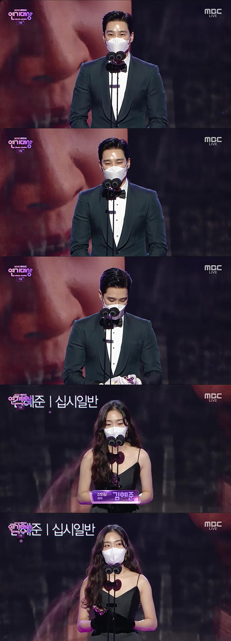 [스포츠조선닷컴 이우주 기자] '2020 MBC 연기대상' 안보현, 김혜준이 남녀 신인상을 수상했다.