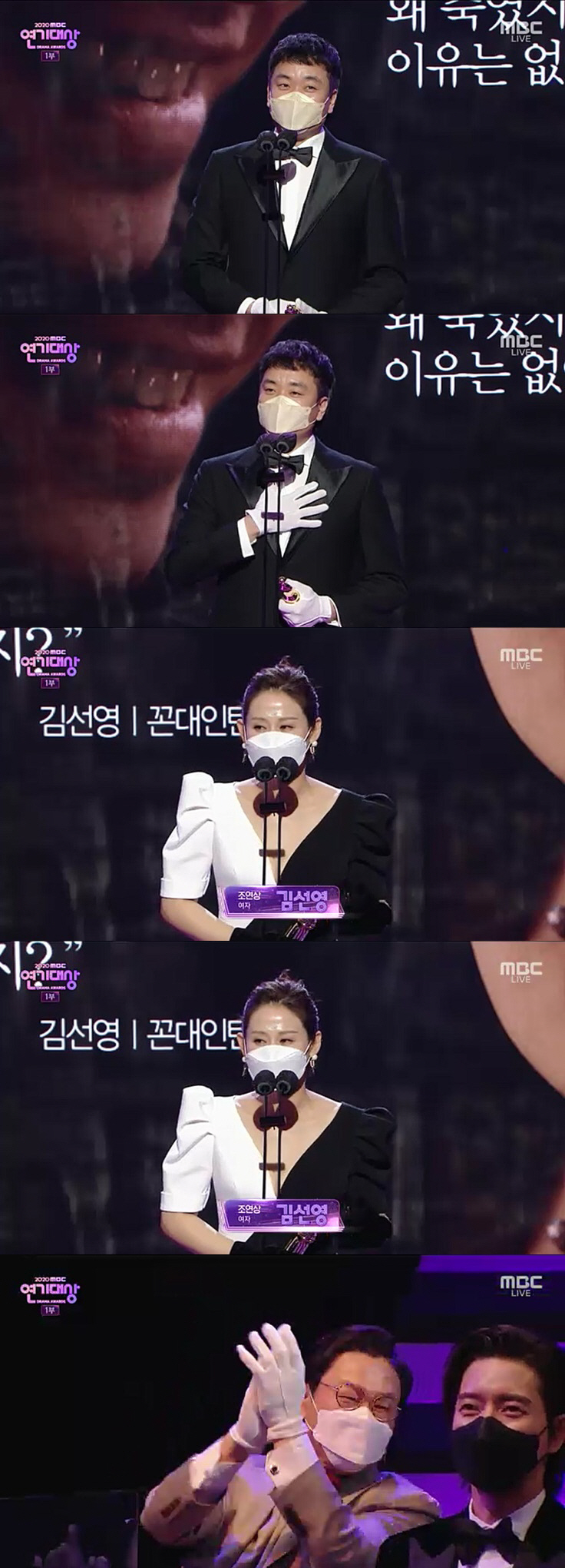 [스포츠조선닷컴 이우주 기자] '2020 MBC 연기대상' 이성욱, 김선영이 나란히 남녀 조연상을 수상했다.