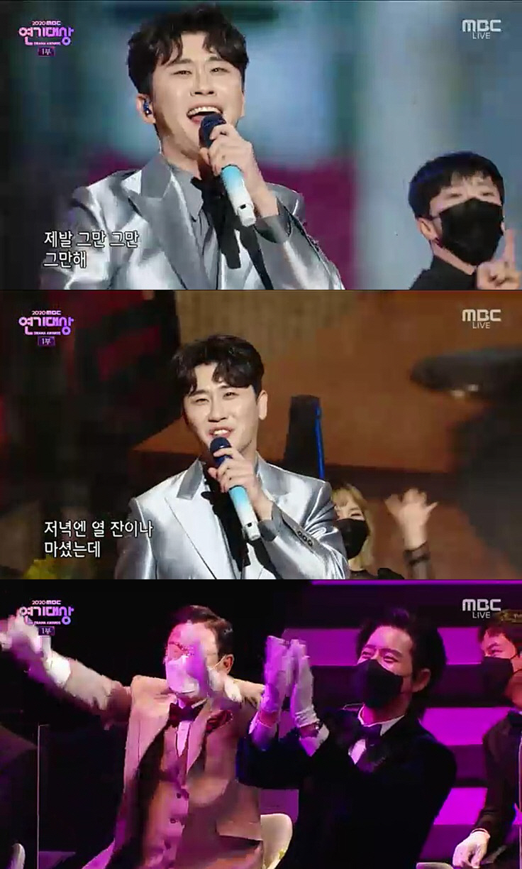 [스포츠조선닷컴 이우주 기자] '2020 MBC 연기대상' 영탁이 '찐한' 무대로 배우들의 흥을 돋웠다.