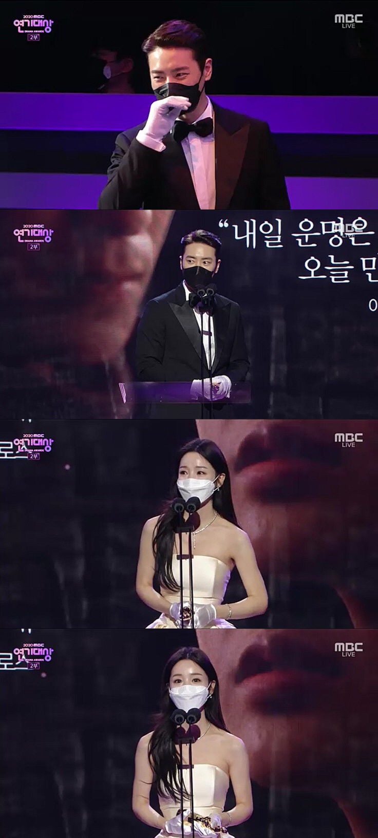 [스포츠조선닷컴 이우주 기자] '2020 MBC 연기대상' 이준혁, 남규리, 임주환, 김슬기가 우수 연기상을 수상했다.