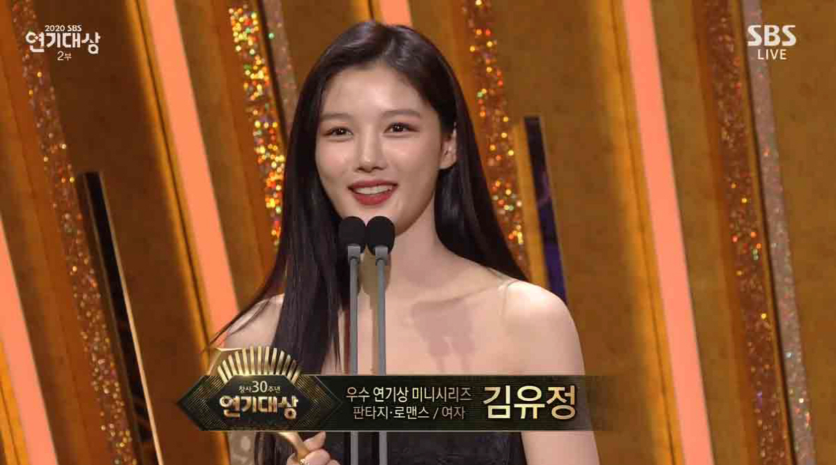 김유정은 "올 한해 바쁘게 지냈는데 우수연기상을 받을만큼 우수했는지 잘 모르겠다. 지금 이순간에도 방역을 애써주신느 많은 분들 올 한해 고생하셨다. 새해에는 밝고 웃을수 있는 시간이 됐으면 좋겠다"고 소망했다.