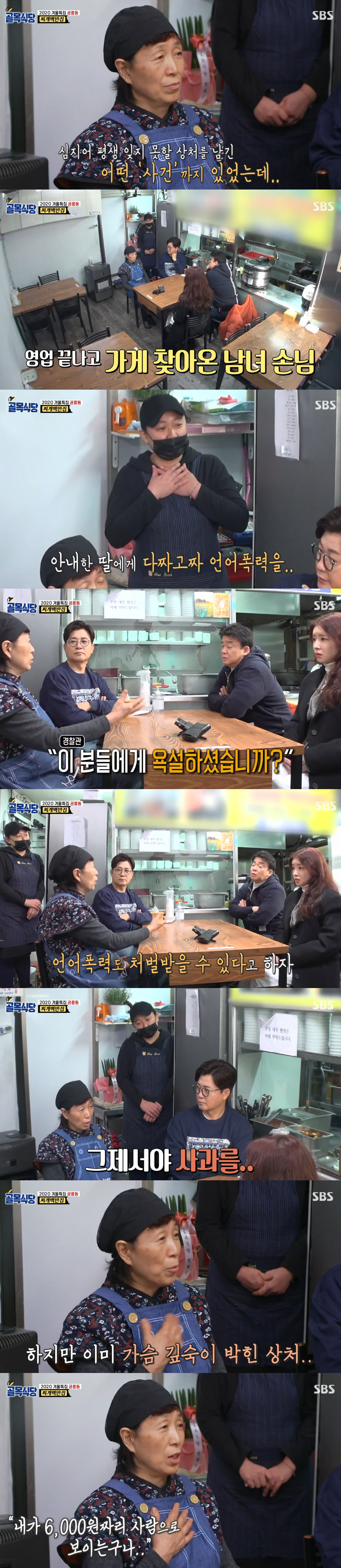 사장님은 "그게 아직까지도 멍이 되더라"며 "'내가 6000원 짜리 백반집을 하니까 6000천원 짜리 사람으로 보는구나'했다"며 무심코 던지는 한 마디는 사장님에게 모두 상처가 됐다.