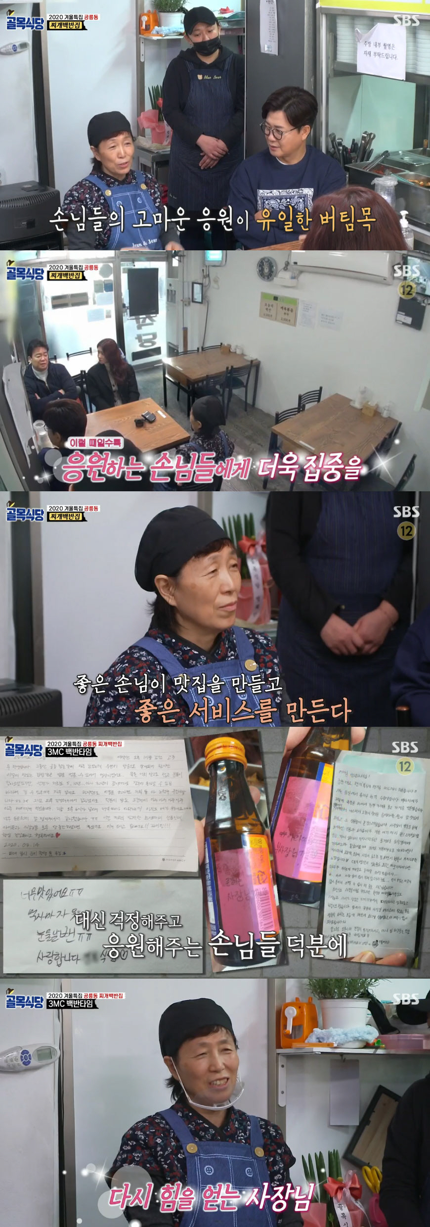 사장님의 유일한 버팀목은 손님들의 고마운 응원이었다. 사장님은 대신 걱정해주고 응원해주는 손님들 덕분에 다시 힘을 냈고, 백종원은 "좋은 손님이 맛집을 만들기도 하지만 본인이 대우를 받게 돼 있다"며 응원했다.