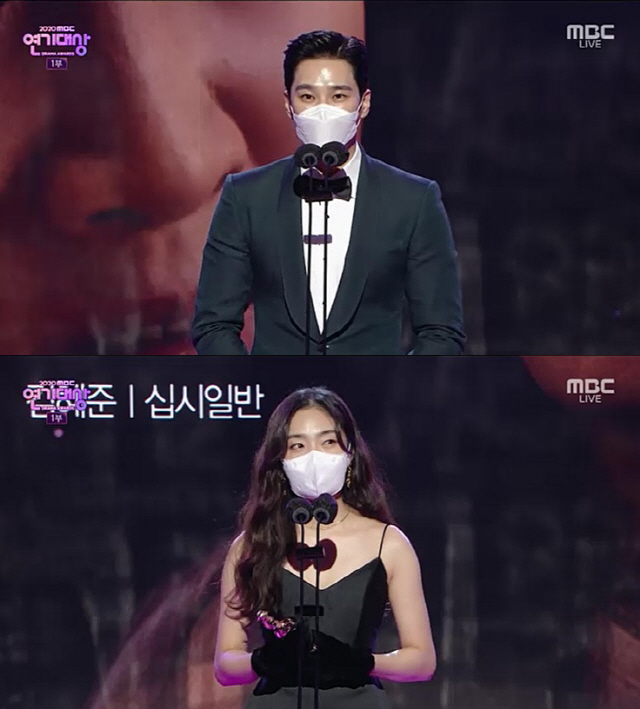수목 미니시리즈 남자 부문 최우수상 수상자는 '꼰대인턴'의 김응수, 여자 부문 수상자는 '내가 가장 예뻤을 때'의 임수향이 수상했다. 김응수는 "역시 MBC다. 대한민국의 화두였던 꼰대, 갑질. 거기에 박자를 잘 놔주신 MBC 드라마국, 너무나 재미있게 작품을 잘 써주신 작가와 감독께 감사 드린다"며 "'꼰대인턴'을 하는 동안 저희 현장은 단 한 번의 트러블도 없었다. 트러블이 있었다면 코로나19라는 복병이었다. 지금도 코로나19 팬데믹에서 고통 받고 계신 분들, 의료 현장에서 고군분투하시는 의료진 분들, 그리고 '꼰대인턴'의 이만식 같이 삶의 현장에서 고군분투 하시는 삶의 주역들, 여러분들에게 제가 이만식을 통해서 여러분을 성원하고 싶었다"고 밝혔다.